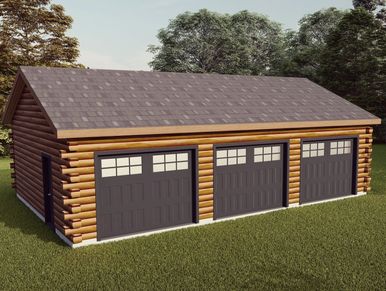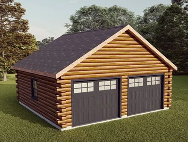 We offer a complete selection of log garages, designed to meet your specific vision and needs. All garage plans can be altered or modified. All our garage kits offer a variety of options including full 8" D Log in either Canadian North Eastern White Pine or Canadian Cedar, framing, roof trusses or rafters, all sheathing, architectural shingles, windows, service door, fascia, soffit, trim, ice and water shield, headers. All log garages are pre-cut for easy assembly. Browse our designs below or tell us more about your specific construction needs.